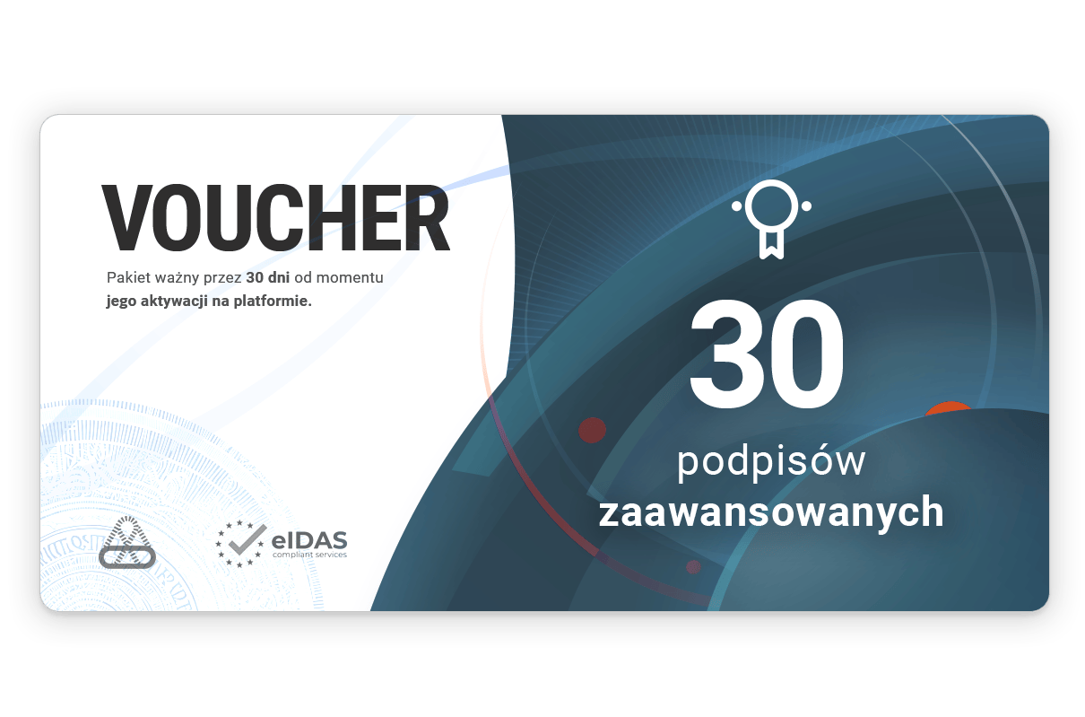 Pakiet podpisów zaawansowanych jest sprzedawany w formie VOUCHERA do wykorzystania na platformie SIGNIUS. Każdy VOUCHER ma postać jednorazowego kodu aktywacyjnego, który otrzymasz wraz z instrukcją aktywacji natychmiast po zakupie.